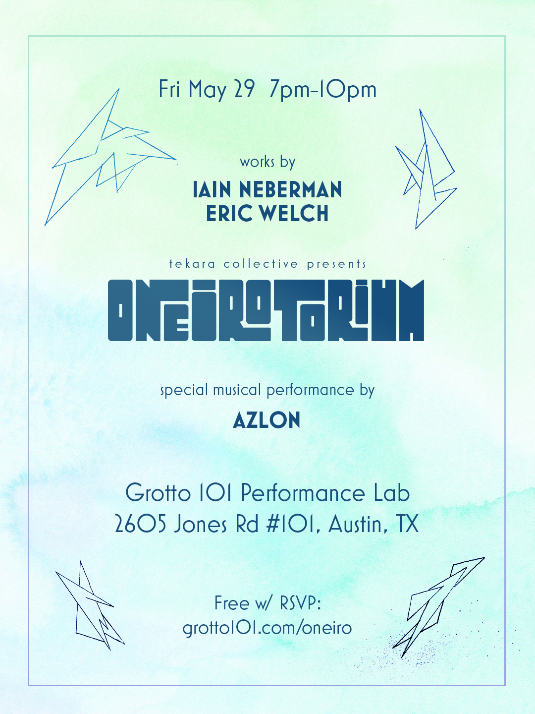 Oneirotorium is an artistic exploration through the world of dreams and imagination within the human mind’s limitless ability to manifest. Visual artists lain Neberman and Eric Welch provide new insights into their own expansive universes where beauty and mystery surround the everlasting memories of their waking and astral lives.